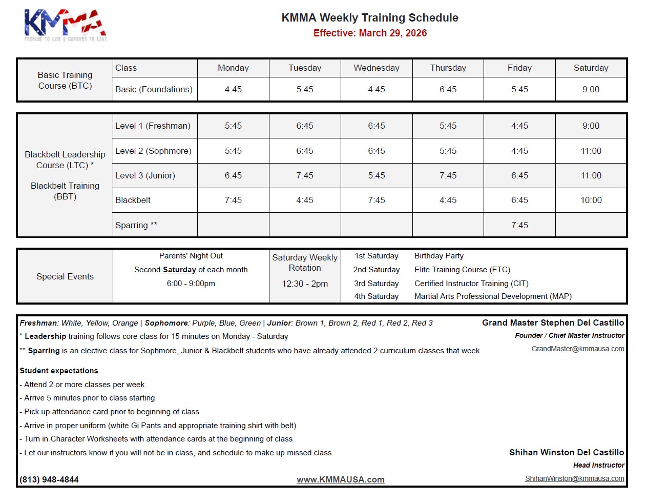 NEW SCHEDULES EFFECTIVE March 30, 2026